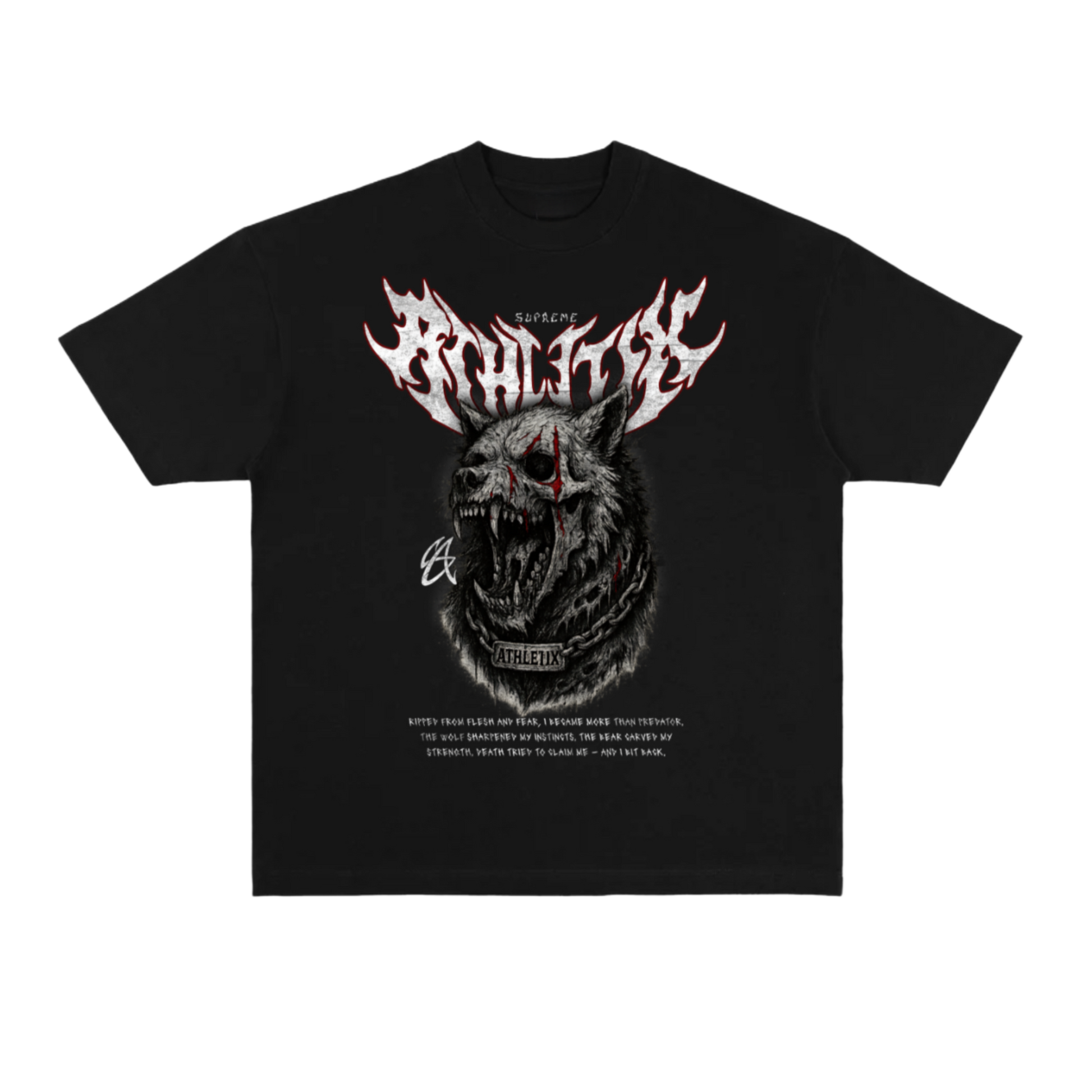 The Beyond the Predator tee captures the unstoppable spirit of Supreme Athletix—greater than beast, stronger than death. Featuring the powerful bearwolf hybrid, this oversized tee offers just the right boxy fit for maximum impact and comfort. Show the world you refuse to fall and embody unmatched strength and resilience with every wear.
